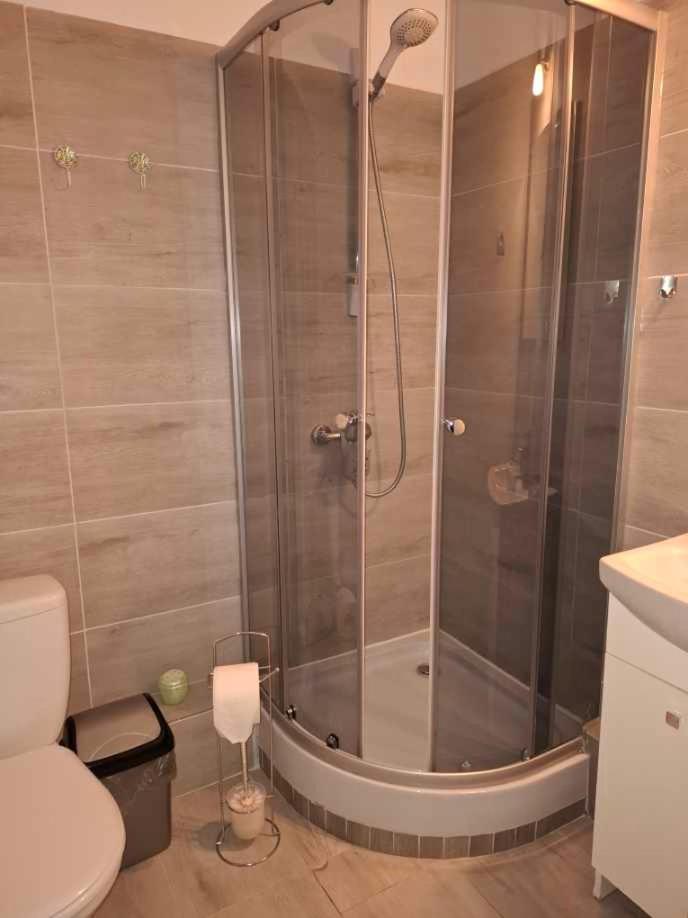 Studio z łóżkiem typu king-size i rozkładaną sofą. The studios kitchenette, which features a stovetop and a refrigerator, is available for cooking and storing food. The studio provides soundproof walls, an electric kettle, a terrace with garden views as well as a private bathroom featuring a shower. The unit offers 2 beds. Studio - 3 osobowy. Powierzchnia pokoju ok.: 22 mkw.