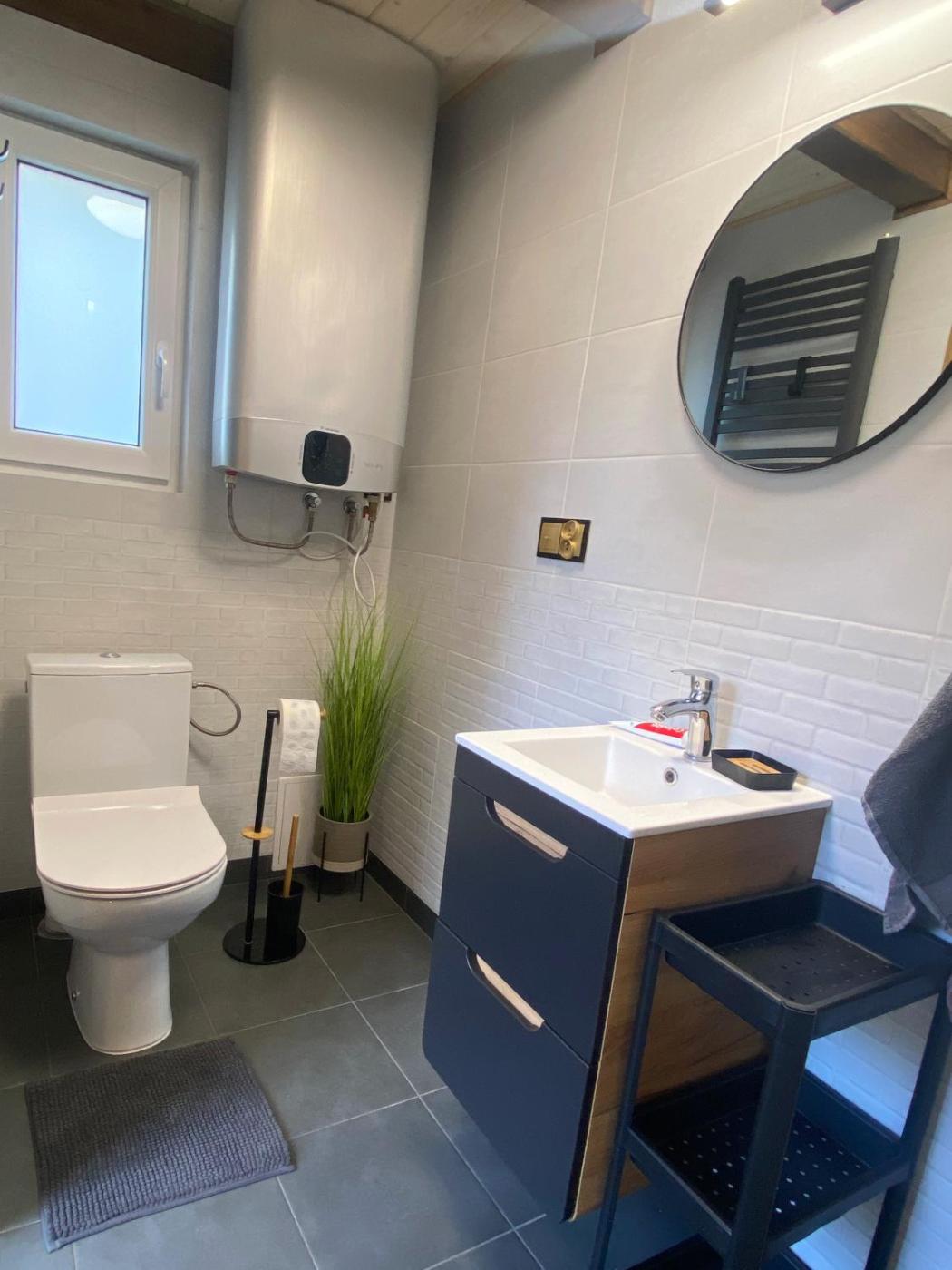 Dom z 2 sypialniami. Guests will have a special experience as this holiday home provides a fireplace. Featuring a private entrance, this holiday home is comprised of 1 living room, 2 separate bedrooms and 1 bathroom with a shower and a hairdryer. Guests will find a stovetop, a refrigerator, a dishwasher and kitchenware in the well-fitted kitchenette. The holiday home also has a barbecue. Boasting a terrace with garden views, this holiday home also offers a tea and coffee maker and a flat-screen TV with streaming services. The unit offers 5 beds. Dom wakacyjny - 7 osobowy. Powierzchnia pokoju ok.: 60 mkw.