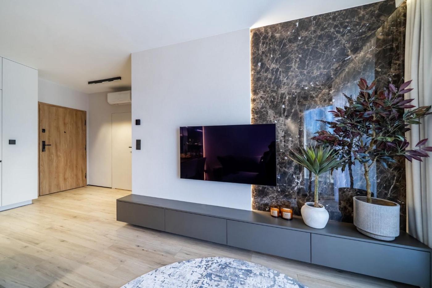 W apartamencie z 1 sypialnią zapewniono klimatyzację oraz salon. Wyposażenie obejmuje też telewizor z płaskim ekranem.